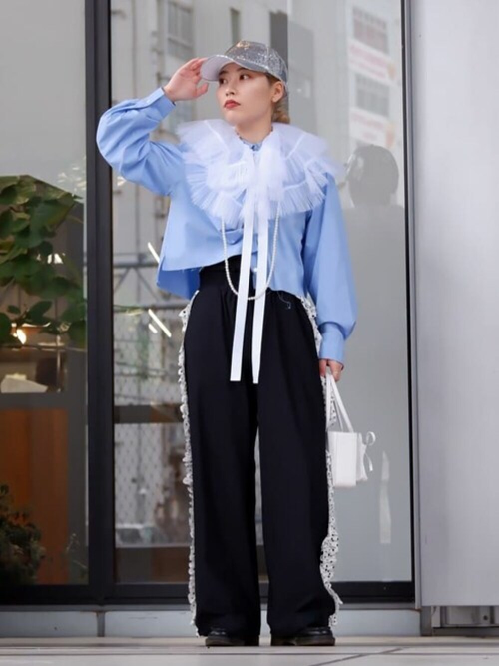 VIVIANO FIRST HAND別注カラーのギャザーチュールカラー コーデのアクセントになります 。 【着用サイズ】 シャツ F