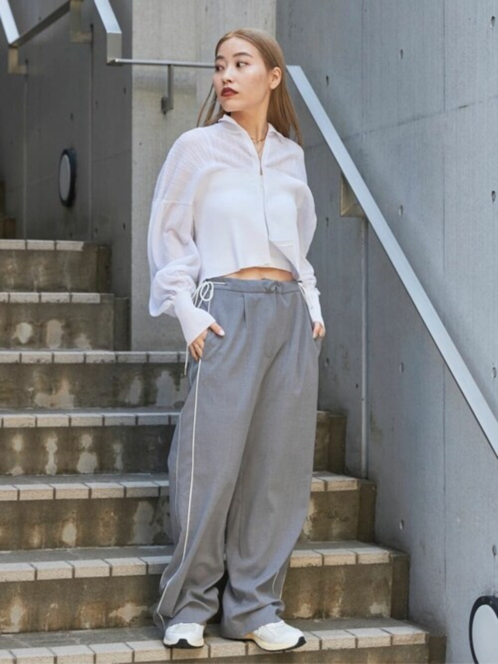 Firsthand(Firsthand HEAD OFFICE)のシャツ/ブラウス「SHIRT Firsthand by 5525GALLERY/シャツファーストハンド5525ギャラリー SHT FH クロップシャツ2 / レギュラーカラーシャツ/SHT FH クロップシャツ2 / レギュラーカラーシャツ」を使ったコーディネート