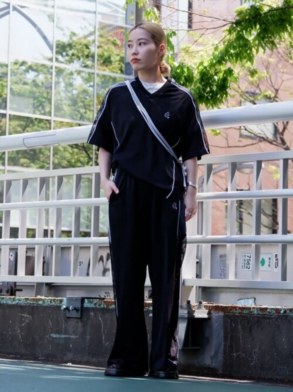 肩・足のレースの透け感でヘルシーに。 【着用サイズ】 トップス F TEE F ボトムス S