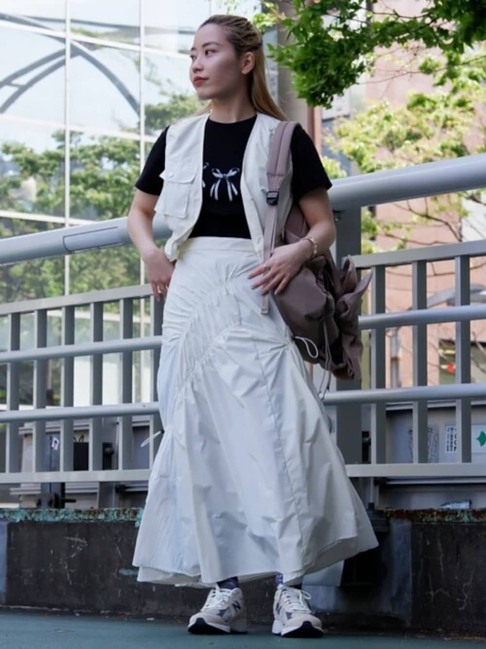 リサイクルポリエステル素材のベストとスカート セットアップ風に着ても◎ 【着用サイズ】 ベスト  F TEE   F スカート F