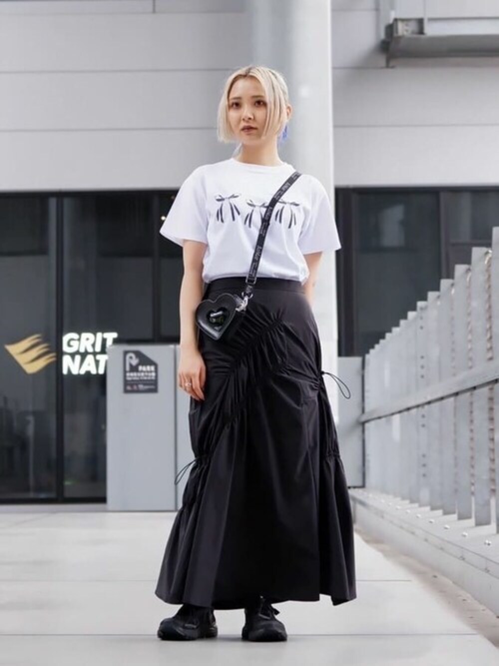 Firsthand(Firsthand HEAD OFFICE)のTシャツ/カットソー「Firsthand/ファーストハンド オーガニックコットンリボンプリントTシャツ / フロントデザインTシャツ」を使ったコーディネート