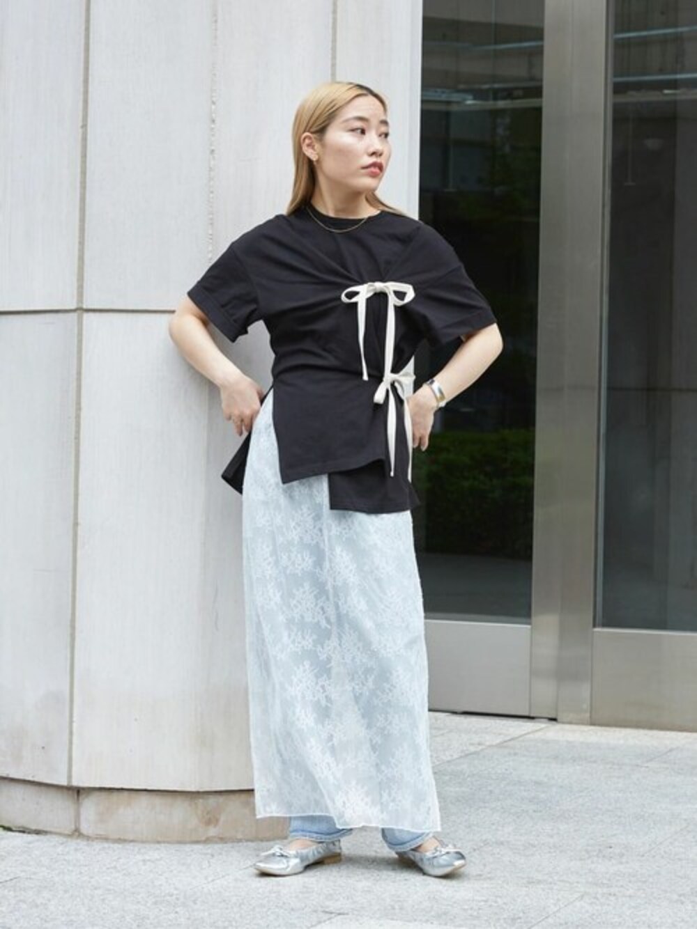 自分のお好みでリボンは調節できます 垂らしたままでも可愛いトップスです 【着用サイズ】 トップス F スカート F