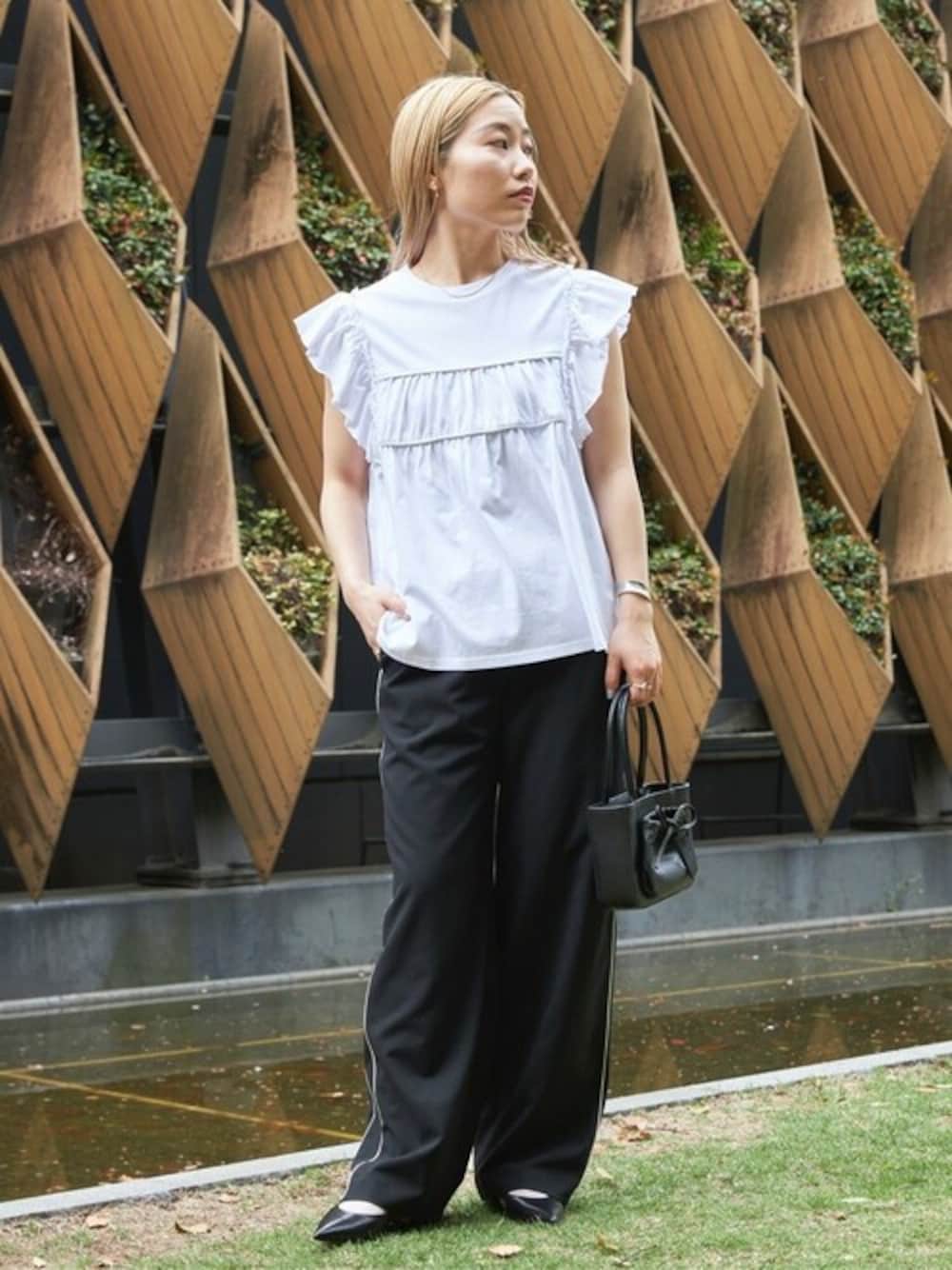 Firsthand(Firsthand HEAD OFFICE)のTシャツ/カットソー「Firsthand/ファーストハンド オーガニックコットンフリルスリーブギャザートップス」を使ったコーディネート