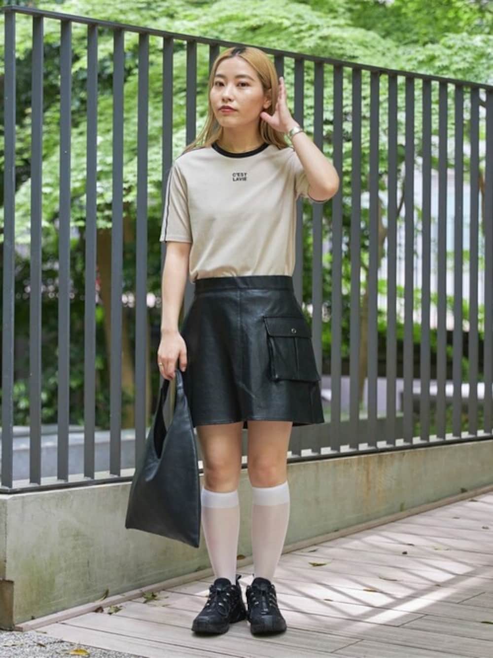 大きなポケットが特徴的なフェイクレザーのミニスカート 【着用サイズ】 トップス F スカート F