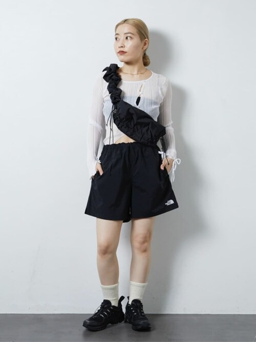 スポーティに パンツはメンズアイテムですが、ゴムで縛れるので女性でも着用できます 【着用サイズ】 トップス F インナー F ボトムス L
