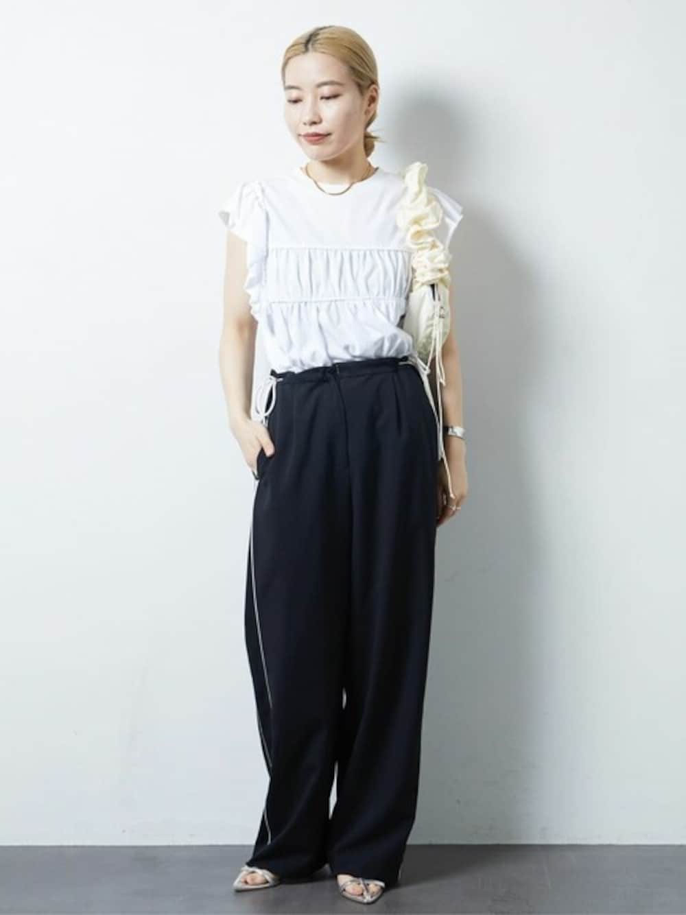 Firsthand(Firsthand HEAD OFFICE)のTシャツ/カットソー「Firsthand/ファーストハンド オーガニックコットンフリルスリーブギャザートップス」を使ったコーディネート