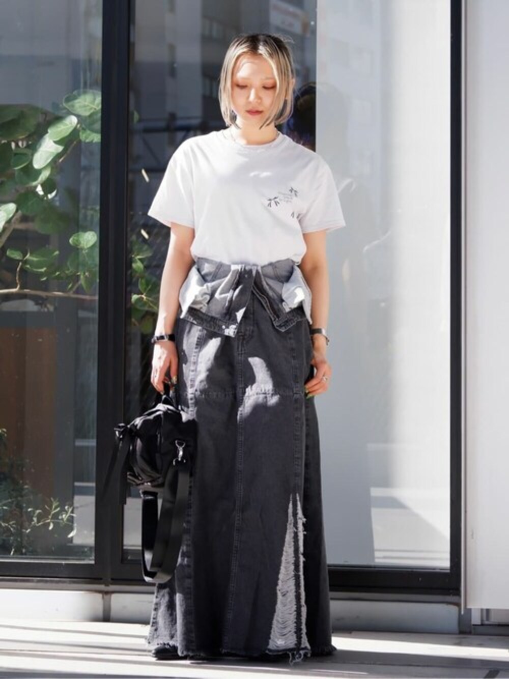 Firsthand(Firsthand HEAD OFFICE)のTシャツ/カットソー「Firsthand/ファーストハンド オーガニックコットンリボンロゴプリントT / フロントデザインTシャツ」を使ったコーディネート