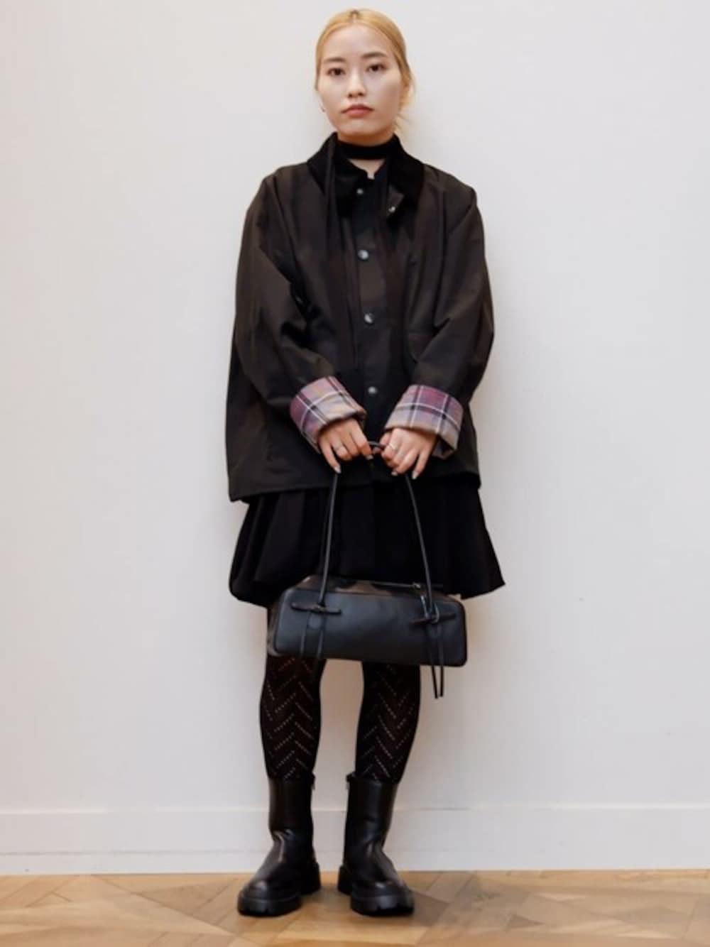 大きめサイズのバブアーは袖を折って着るとチェック柄が見えて可愛いです! 中にもしっかり着込めるのでオススメです!