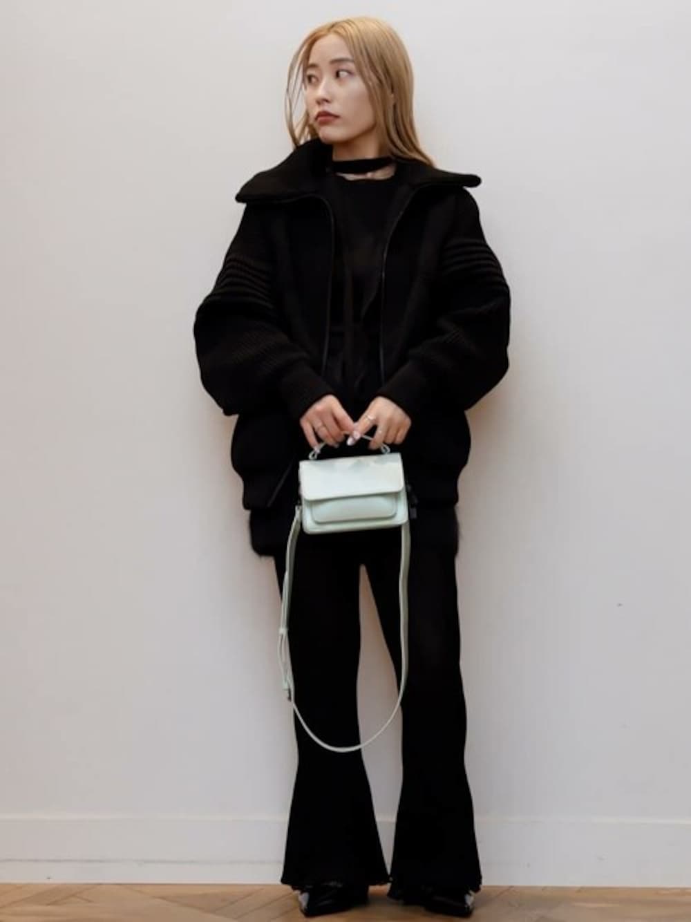 オールブラックに差し色でVISKのレザーバッグを! CFCL新作のアウター とても着心地◎暖かさ◎のスーパーアウターです! ダブルジッパーなのも推しです!