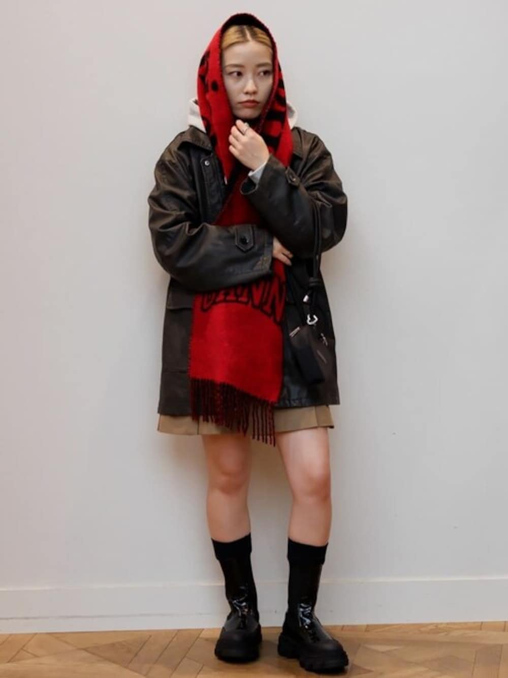 GANNI新作💖 ガーリーめなミニスカートですが、レザージャケットや強めのカラーで合わせると◎ ジャケットはサイズございますので、ユニセックスで着用可能! 着用サイズ0です!