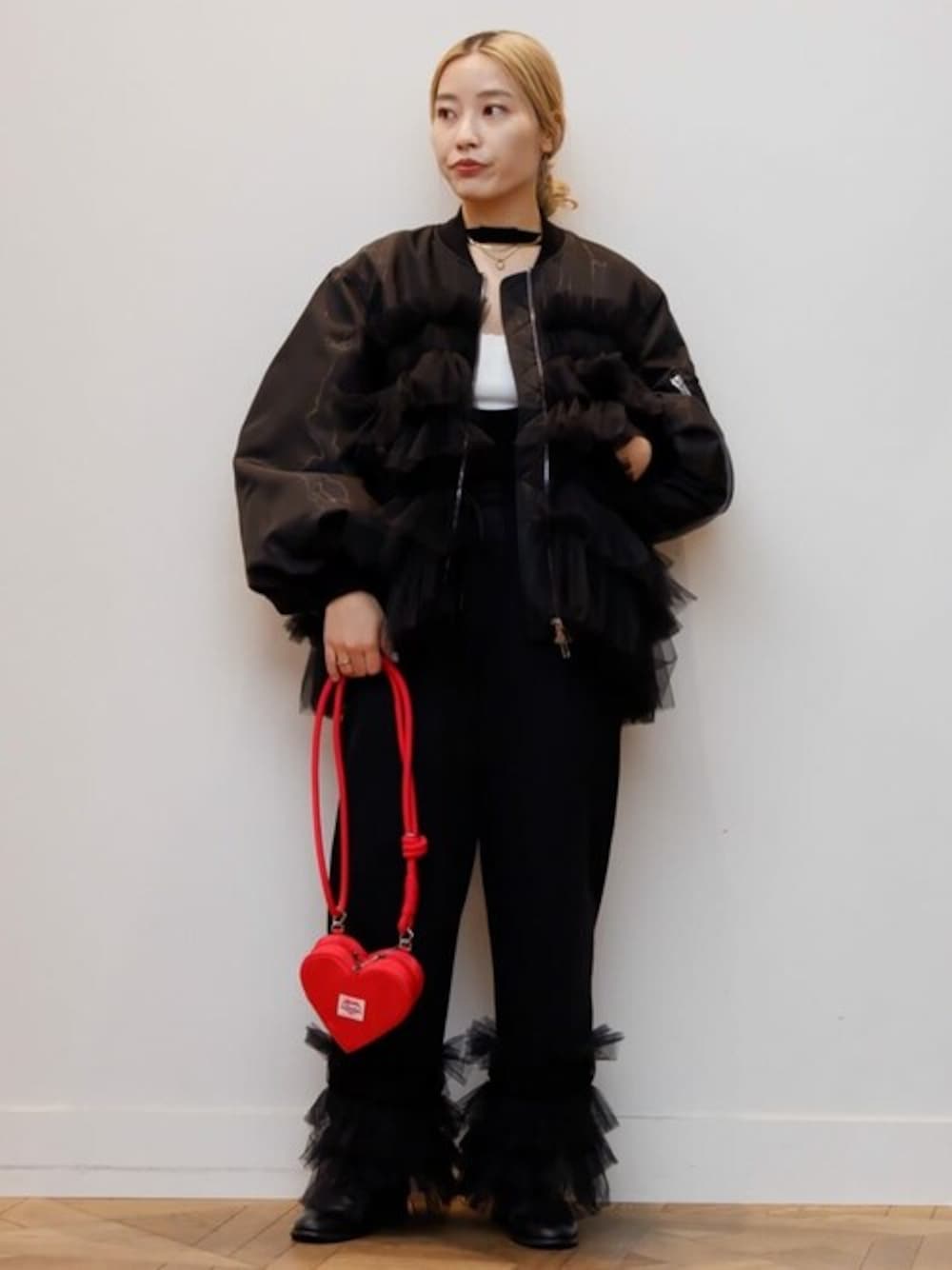 Firsthand(Firsthand HEAD OFFICE)のショルダーバッグ「BASICKS × OUTDOOR PRODUCTS × Firsthand/ベイシックス × アウトドアプロダクツ ×BASICKS HEART MINI BAG / 別注ハートミニショルダーバッグ」を使ったコーディネート