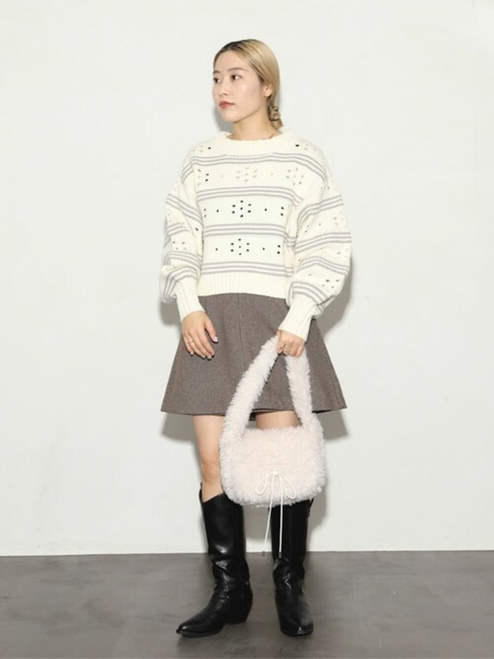 ショート丈のガーリーなニット