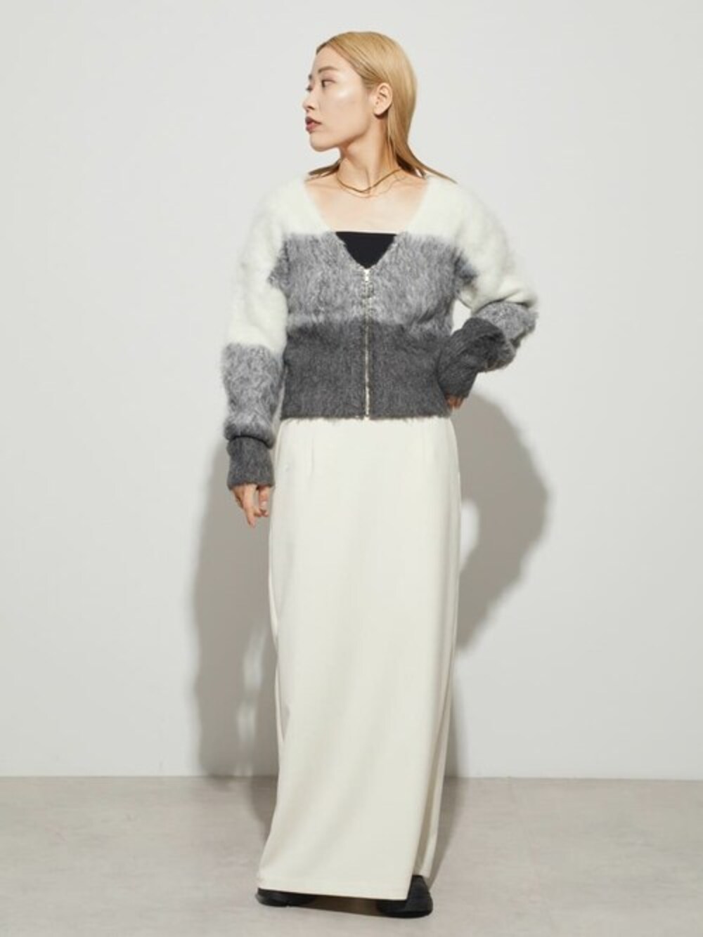 Firsthand(Firsthand HEAD OFFICE)のカーディガン/ボレロ「Firsthand/ファーストハンド リサイクルシャギーグラデーションZIPカーディガン / ジップカーデ」を使ったコーディネート