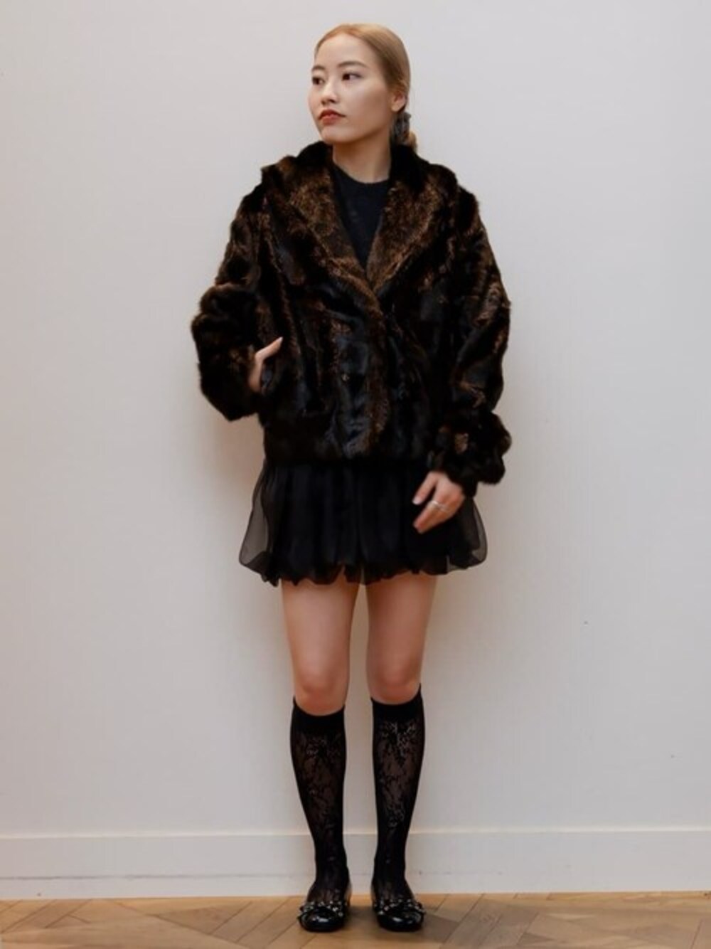 フェイクファーのジャケットです!フロントはスナップボタンで留めやすさ◎ゴージャスな雰囲気がとても素敵なアウターです!