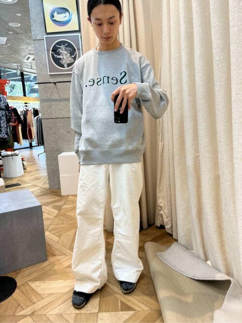 知的なワードで、洗練されたスウェットはカジュアルながら、スタイリングを豊かにしてくれます。 カラーバリエーションも多く、あなたのワードローブにハマるものがあるはずです。 サイズ感は身長178cm細身で、Lサイズが程よくリラックスしていて、着心地が良いです。 素材は薄すぎず、重すぎない厚みで、起毛の少ない裏起毛。暖冬でも暑くなり過ぎず、長いシーズンお召し頂けそうです。 着用サイズ スウェット L