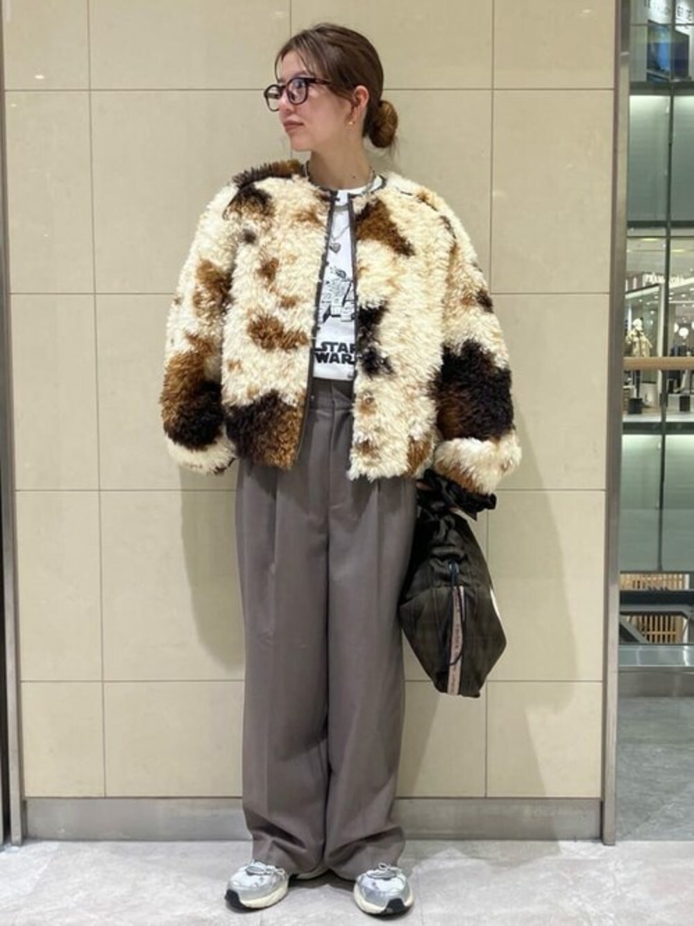 フェイクファーブルゾンの柄がとても可愛いくて、コーデの主役です! 冬のアウターとして、これ一つあれば一気に華やかなコーデもできます! 着用サイズ アウター F ボトムス S