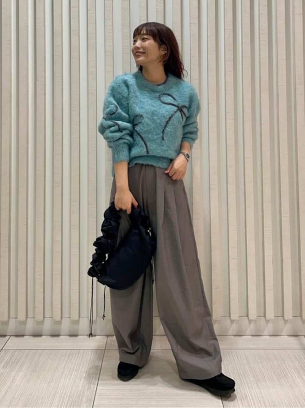 リボンのデザインが可愛いfirsthandのニットプルオーバー🎀配色が水色✖️グレーで大人っぽいので、可愛くなりすぎず着こなしていただけますよ^^