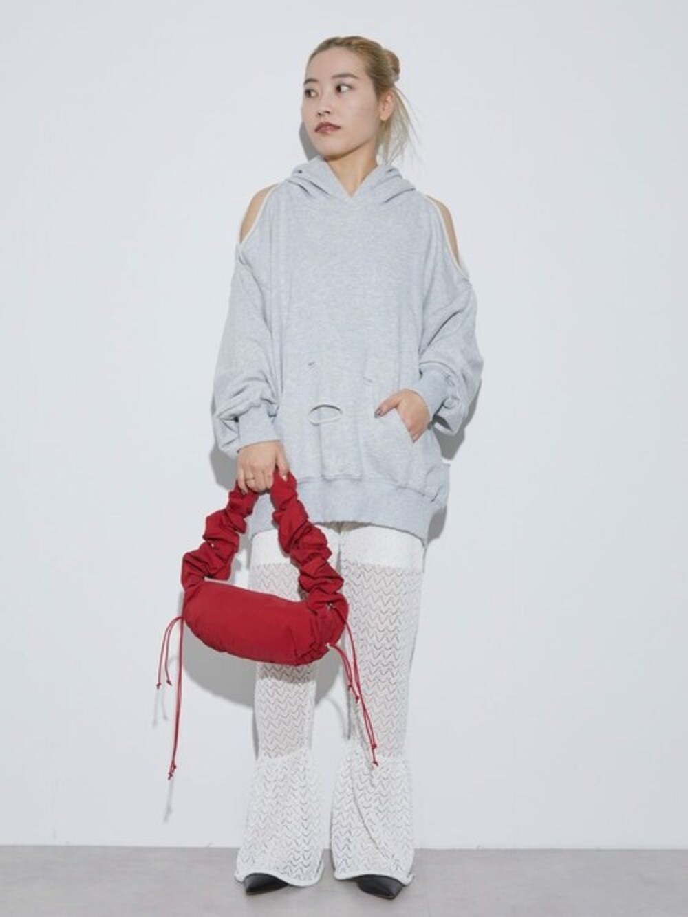 肩がざっくり開いたフーディーパーカー!カジュアルなアイテムですがデザイン性があって◎
