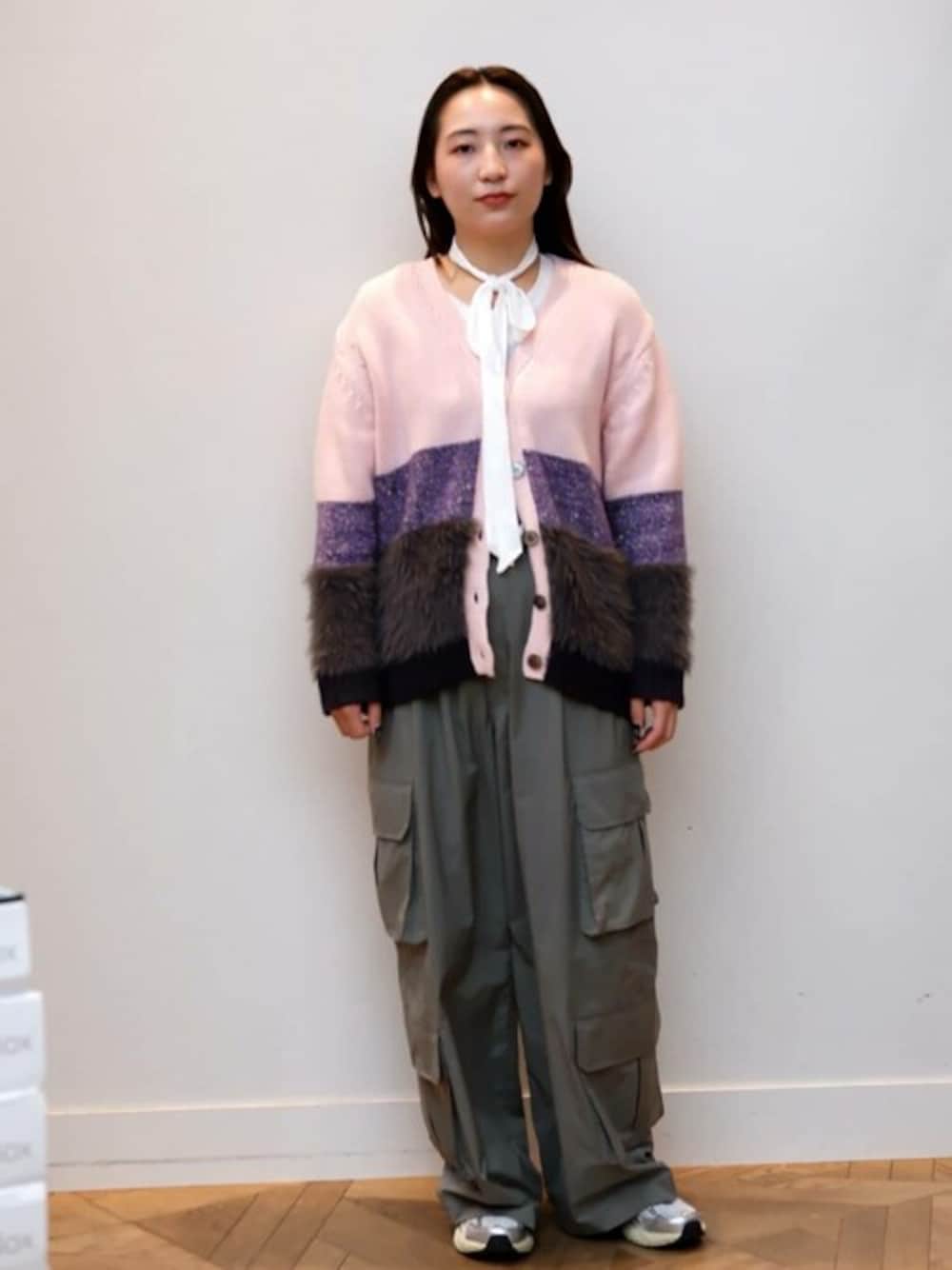肌触りがふわふわのファーがあしらわれたニットカーディガン♡ゆったりめなサイズ感なので、ストレスフリーにお召しいただけます!よーく見るとお花のスパンコールがキラキラ光っているのもpoint🌼