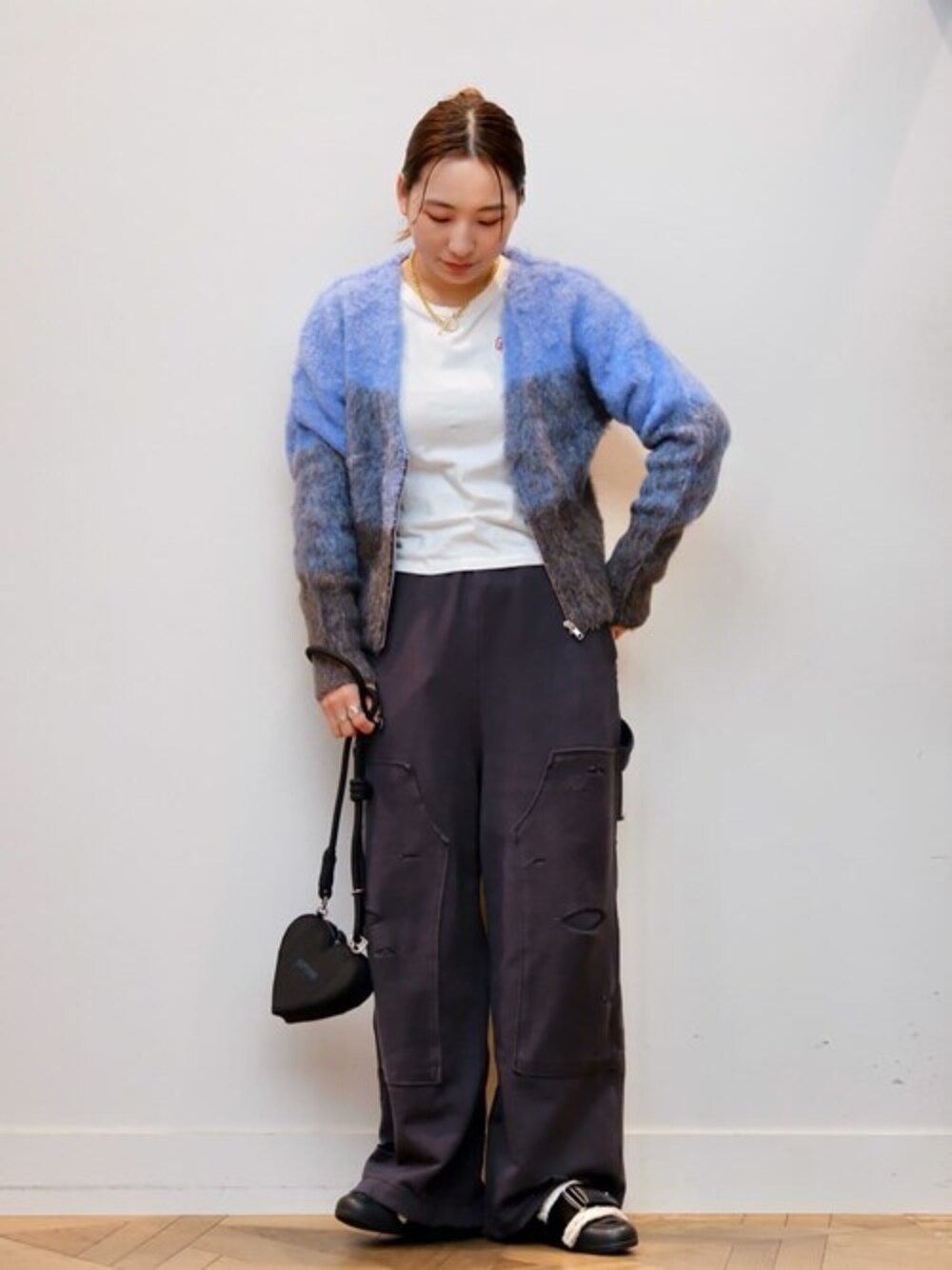 Firsthand(Firsthand HEAD OFFICE)のカーディガン/ボレロ「Firsthand/ファーストハンド リサイクルシャギーグラデーションZIPカーディガン / ジップカーデ」を使ったコーディネート