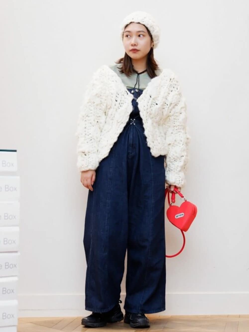 身長158cmでサロペットはMサイズを着用しております!(肩紐はボタンで取り外しができるので外した状態で撮影しております