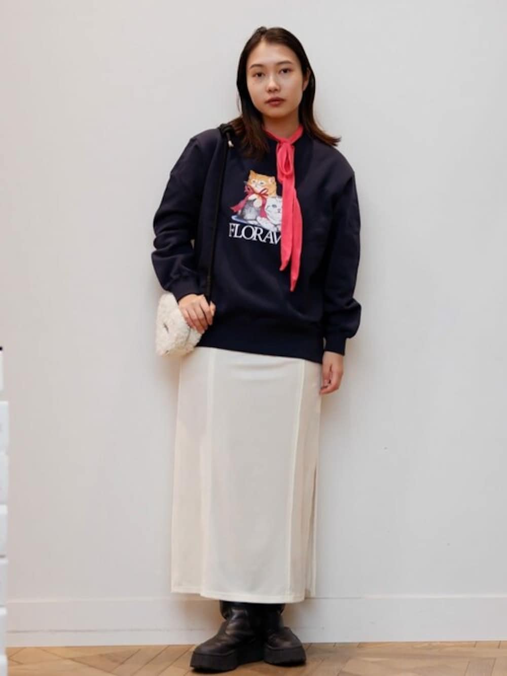 着用しているものは全てフリーサイズです😌 ワンピースの上からスウェットを重ねてきてみました!