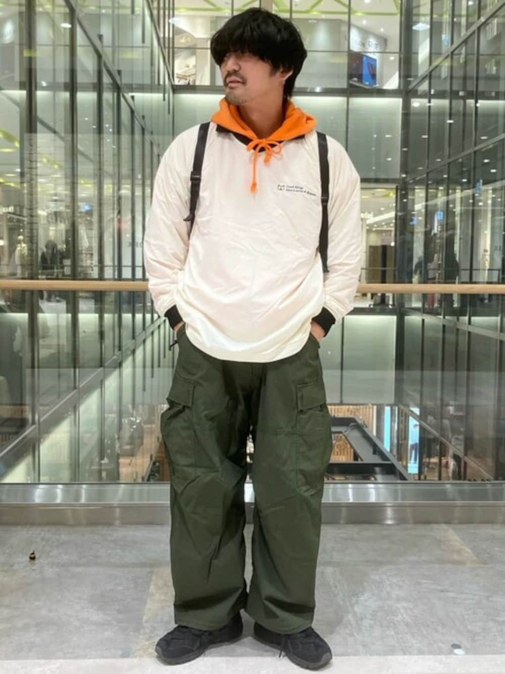 ナイロンプルオーバーを使いたいだけのコーデ。 気温がコロコロ変わって何着ればいいか難しい季節に一枚持ってれば便利なプルオーバー。レイヤードがしやすいので中に持ってくるものを変えるだけで全気温対応の万能トップスです。 今回はオレンジのパーカーを差し色に他の色をベーシックで抑えてカジュアルな中に洗練さをイメージ。ナイロンプルオーバーから出るフードが肝なので他はシンプルでよいのです。 とはいえ全体的なシルエットにはゆとりを持たせてあげた方がまとまりは出るかなと、ボトムはオーバーサイズのカーゴで、パーカーのオレンジとネイビーのカットソーでミリタリーカラーで纏めておきました。 プルオーバー脱いでもそれはそれでありなコーデかなと、是非。 ※着用サイズ ・パーカー M ・トップス L ・ボトム L ※掲載画像の商品の色味は屋外や屋内の光な照射や角度により実物と色味が異なる場合がございます。 ※こちらの商品はweb store及び店舗でも展開しております。ぜひご覧ください。 ※安全を考慮した上で撮影しております。 ★フリークスストアを運営するデイトナ・インターナショナルのLINE公式アカウントができました★ 以下のリンクから最新情報やクーポン配信予定! ↓ https://lin.ee/Zlnmv03 是非お友達追加お願いします!!