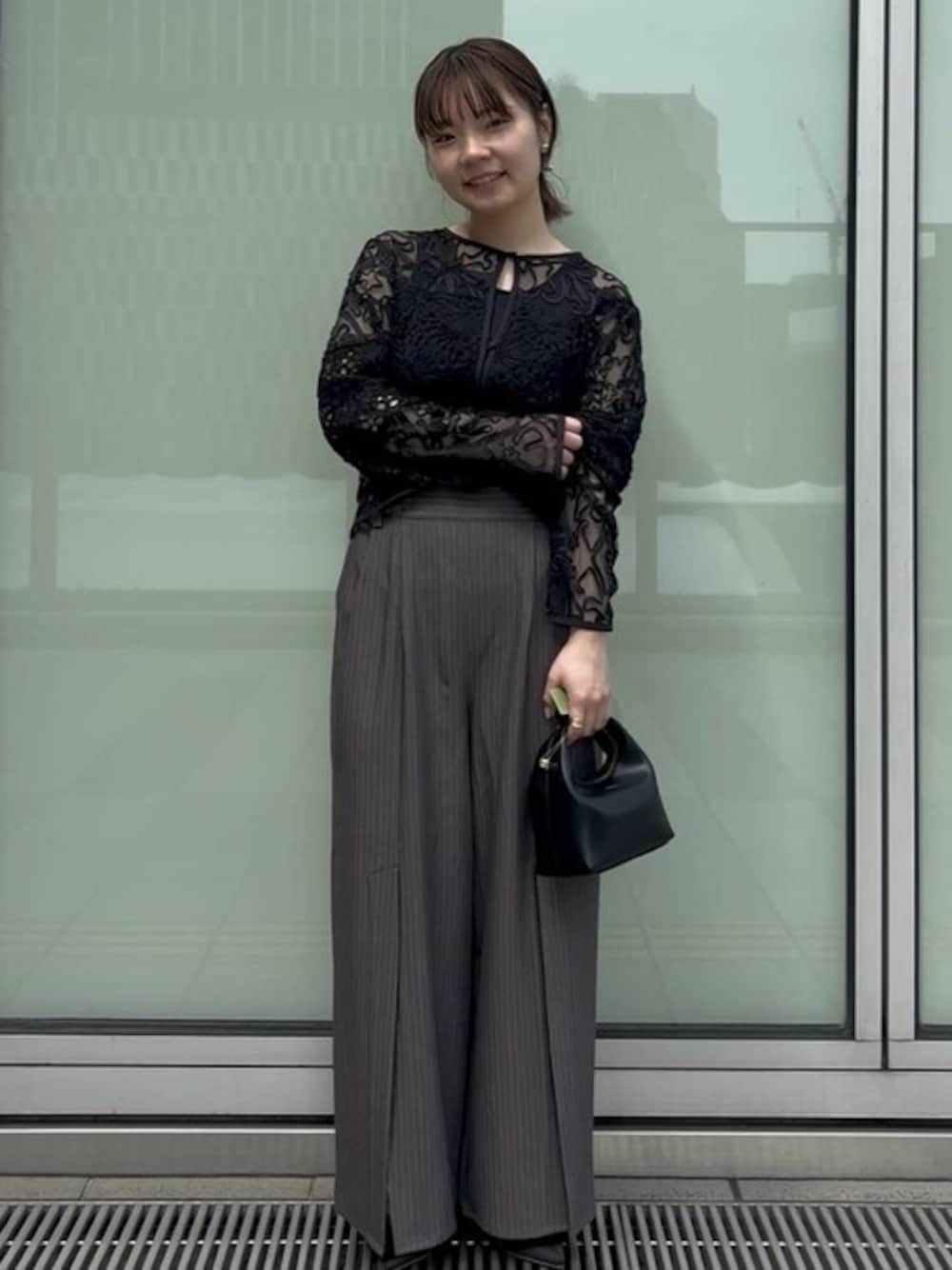 Firsthand(Firsthand HEAD OFFICE)のスラックス「Firsthand/ファーストハンド レース×ストライプ スプリットワイドパンツ」を使ったコーディネート