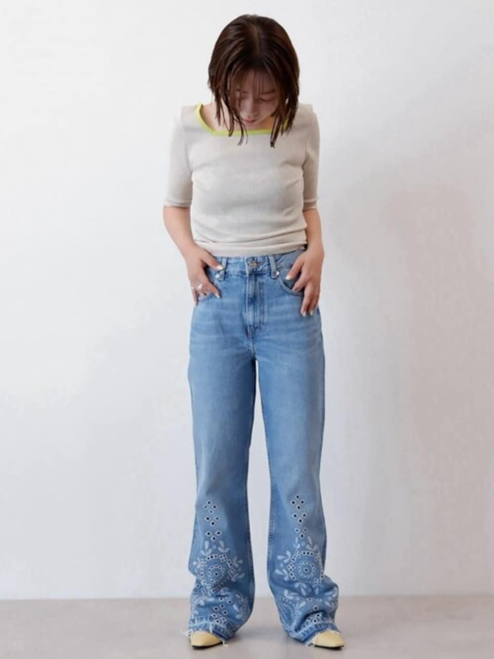 GGGのお取り扱いが始まりました。 長く着たくなるトップスです。 シンプルなトップスには 刺繍のデザインが印象的なGANNIのデニムを合わせました。(26サイズ着用)