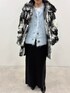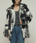 ニュアンスのカウ柄のカールファーアウター 羽織るだけで主役になる柄のアウターは 1枚あると便利です バリエーション釦ニットカーデと シルク入りニットタイトスカートと 合わせて大人カジュアルスタイリング