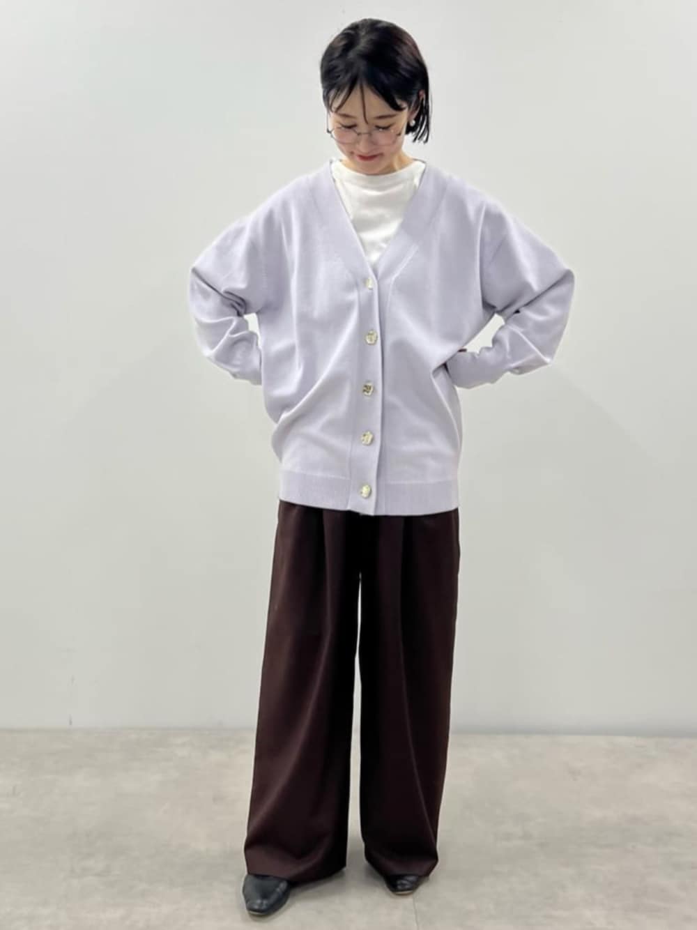 Firsthand(Firsthand HEAD OFFICE)のカーディガン/ボレロ「Firsthand/ファーストハンド 機能性素材 シルク入り 金釦 ニットカーディガン / 抗ピル / マシンウォッシャブル」を使ったコーディネート