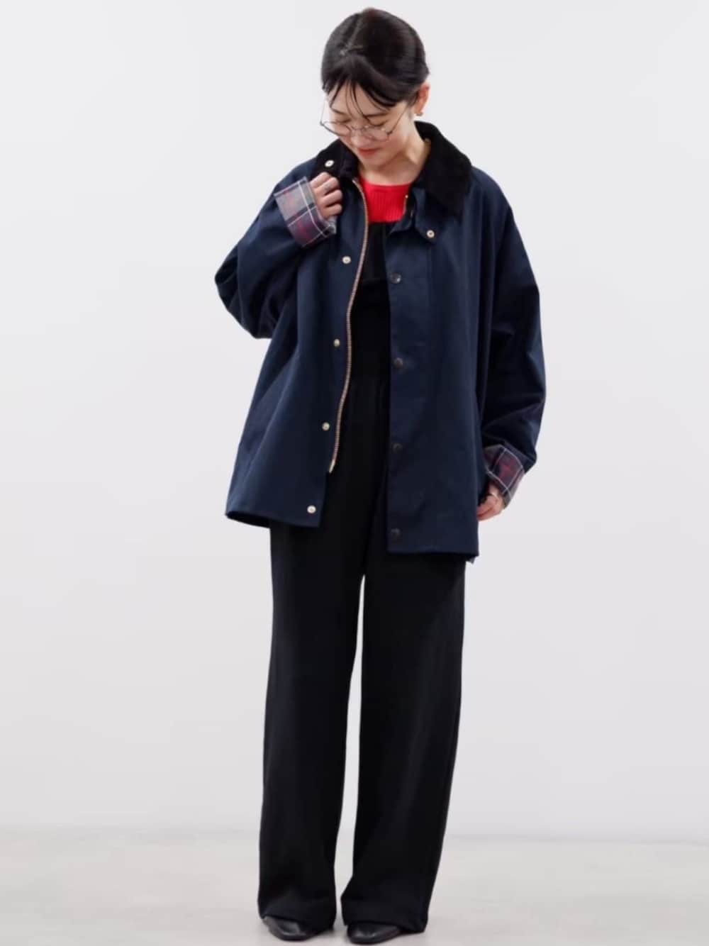 大好評のFirsthand別注のバブアー コーチジャケットのようにデイリーに羽織れる丈感で、折り返している袖を伸ばしたら 彼氏や旦那さんとユニセックスで着れるのが嬉しいサイズ感です 永遠に長く着られるオーソドックスアウターです