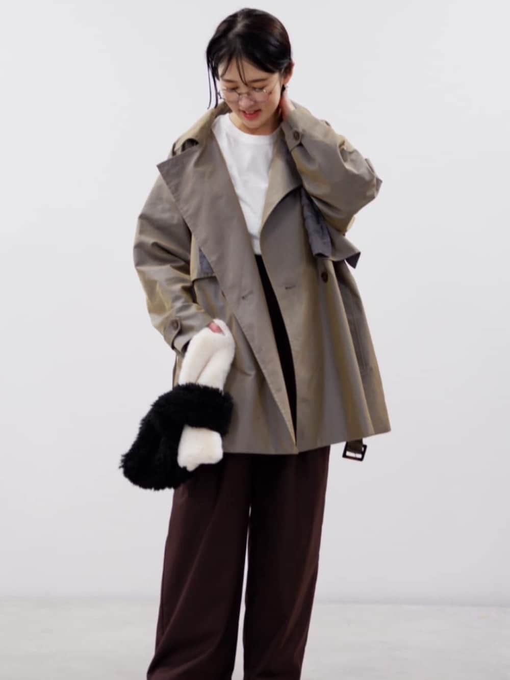 角度によって色味が変わるTCシャンブレー生地を使用したミドルトレンチ この丈が羽織りやすくて今の気分ですよね☺︎ ハリのある素材なのでテントラインが綺麗に出て横から見てもシルエットが可愛いのがポイント インナーダウンを着て真冬にも 春先にも長いシーズン着て頂けます ベロアウエストイージースラックスは どんなスタイリングにも合うので万能! 今年の気分のブラウンが 結構何色のトップスにも合うので 私はブラウンMサイズを買いました🤎