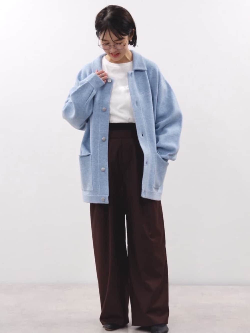 Firsthand(Firsthand HEAD OFFICE)のスラックス「Firsthand/ファーストハンド ベロア ダブルウェスト イージースラックス / ワイドシルエット ウールライク スラックスパンツ」を使ったコーディネート