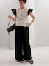 シアージャカードオールインワンにショートジレをレイヤードしても可愛い! オールインワンのボリュームのある袖で 二の腕を細く見せてくれて ジレのショート丈でふわっと広がるシルエットが、上半身が短く脚長効果あり スタイルアップしてくれます♡ ジレは普通にデニムと合わせても可愛いよ! きちんとした場所にぴったりの おすすめスタイリングです
