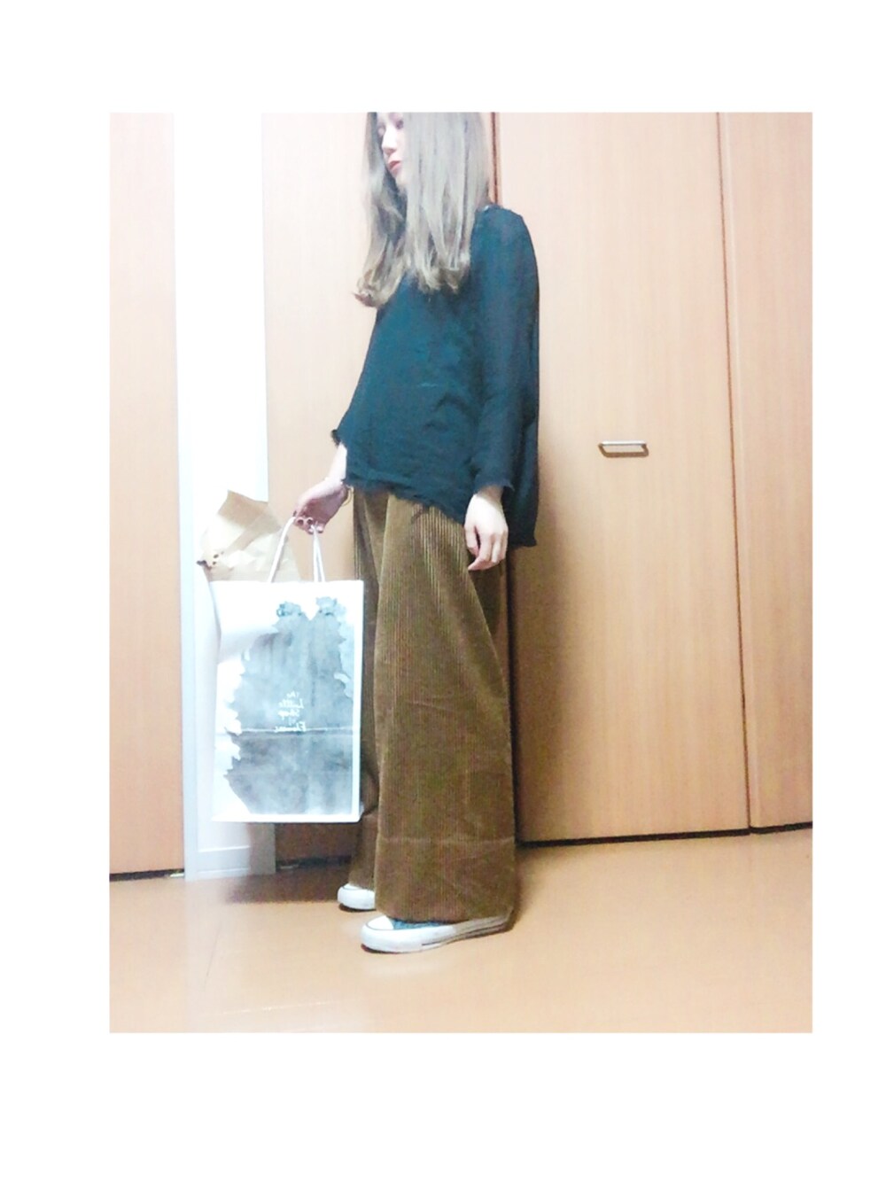 今日もお休み😎 コーデュロイのパンツにブラウスで 相棒のコンバースはハイカットで 見えないですがパンツは後ろの腰らへんにレースアップがほどこされています。 可愛い!けど インしない だって楽ちんスタイルがいいんですもん。 おやすみなさい