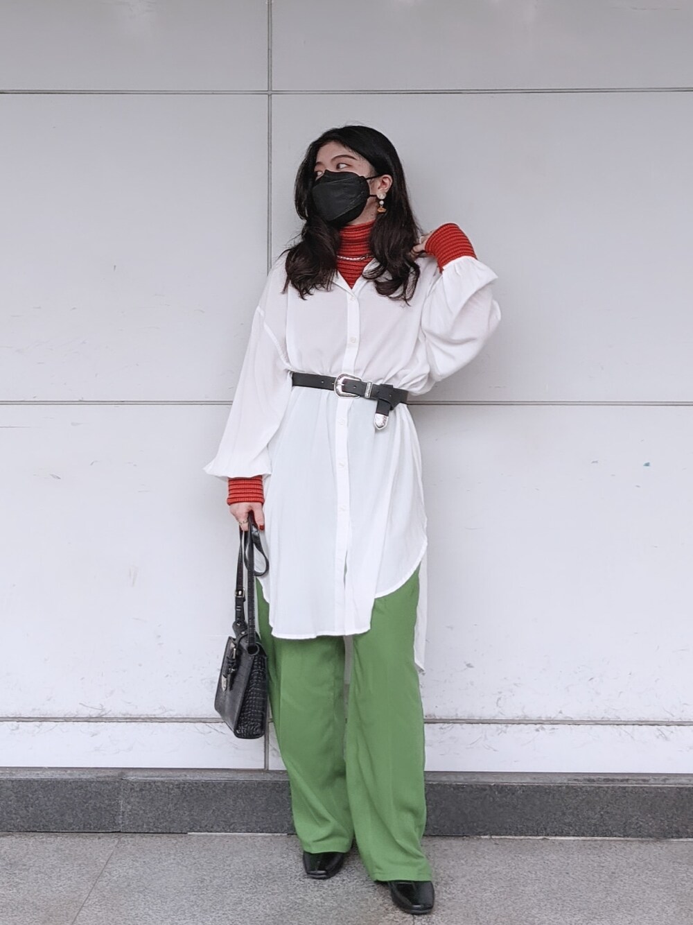 fishaskのスラックス「2タック センタープレス カラースラックス」を使ったコーディネート