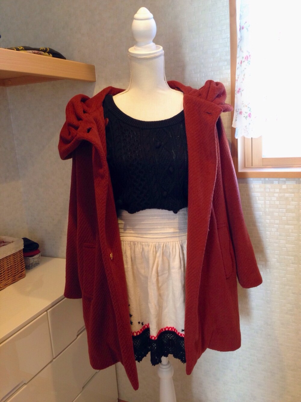 去年買ったkastaneのビックフードコートは レンガ色です*\(^o^)/* このスカートは 3年前くらいに買ったやつ…(笑) kastane愛用してます💘