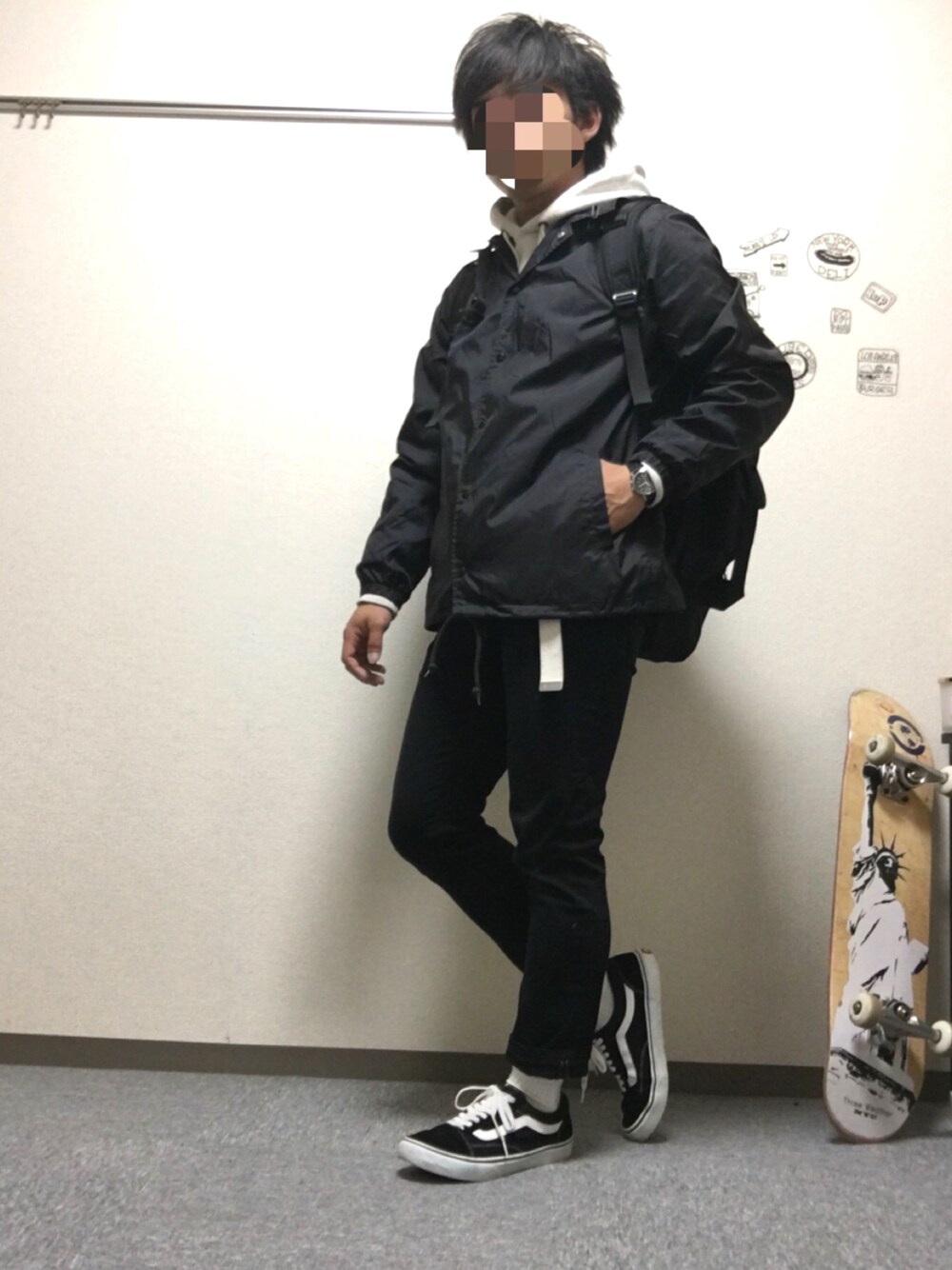 ストリート⁉︎スケーター⁉︎っぽく黒でまとめてみました😎 後ろに置いてあるスケボー練習するときとかはだいたいこんな格好してます(笑) いっつも後ろに置いてる割には全然滑れませんが😂 VANSのOLD SCHOOLは 着まわし効くので本当にコスパいいです✨ 黒が定番ですが是非カラバリ集めたいスニーカーの1つですよね☺️ とにかく楽だし動きやすい! 低価格帯のアイテムばかりでできるコーデなので是非参考に✨