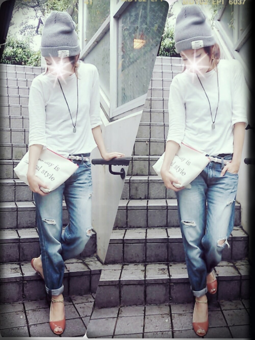 ☆★打ち合わせコーデ★☆ 秋を意識して、七分袖カットソーを着てみましたが。。 まだまだ暑いですね(´д`)
