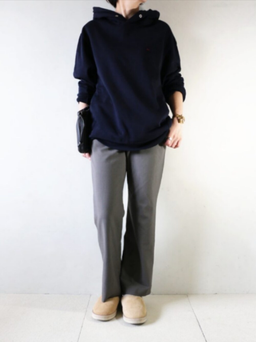 CINOHのパーカーは、カジュアルアイテムながらも計算されたシルエットと上質な素材感で、ぐっとクラスアップした印象。深みのあるネイビーは秋の装いに馴染みつつ、落ち着きと清潔感を演出してくれるので、一枚でこなれ感が出せる優秀アイテムです。 ボトムにモカを選ぶことで、重すぎず柔らかな配色バランスとなり、大人の余裕を感じさせるスタイルに。ストレッチ素材のイージーパンツは快適な穿き心地でありながら、きれいめな印象を崩さないのも魅力。休日のリラックスシーンから都会的なカフェスタイルまで幅広く対応できる、まさに『今欲しい』大人のフーディーコーデ。 詳細 https //fitting.tokyo