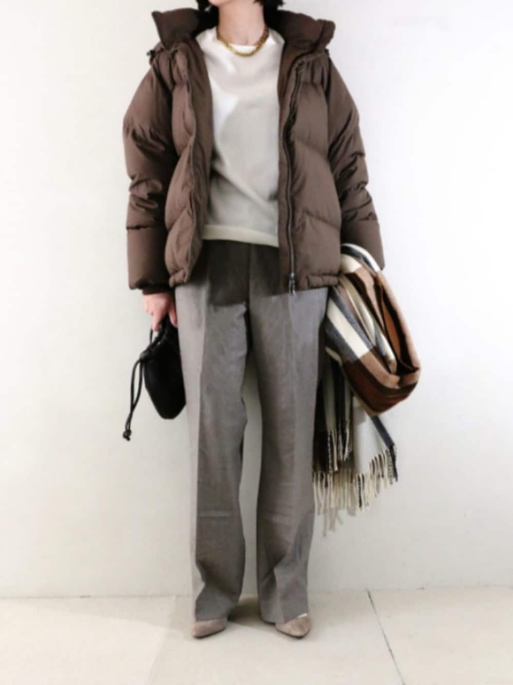 上質アイテムを贅沢にセレクトしたとっておきのコーディネート。HAKUUのDOWNジャケットに、APSTUDIOのクルーネックニット、そしてEVERYDAYのFLAREパンツを合わせました。上質素材を掛け合わせることで、カジュアルでありながら凛とした大人の美しさが漂うスタイルにまとめました。 詳細:https://fitting.tokyo/