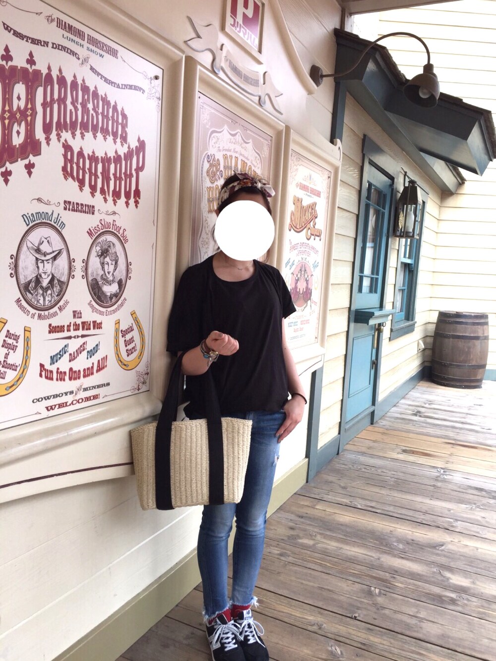 ディズニーランドに来たので、動きやすい格好👐🏻 やっぱりリュックにすればよかった🙄 ungridのデニムはストレッチがきいて、履きやすくてお気に入り🤗‼️