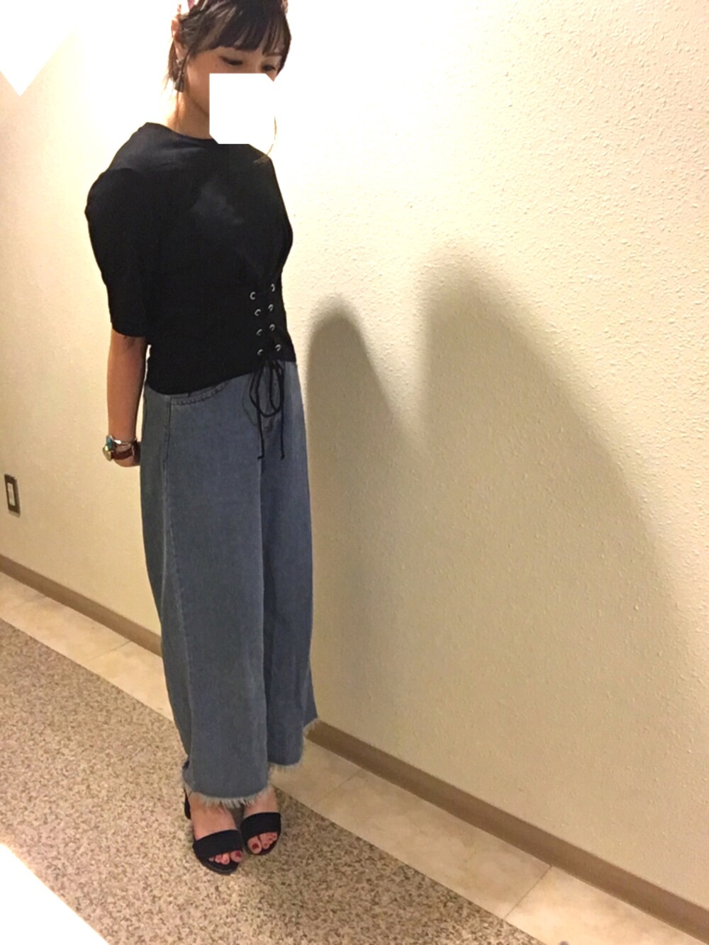 暑すぎるーーーー!!!!! 黒は間違えたかもしれません😳‼️ でもZARAのSALEでゲットのコルセットT お気に入り😋 明日も暑いかなー🌞🌞🌞