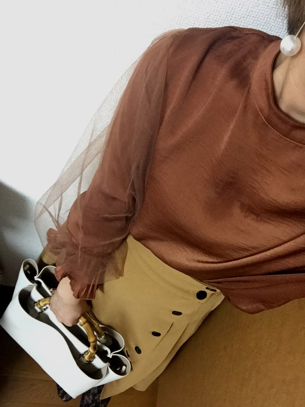 ゆうのシャツ/ブラウス「KBF+ チュールスリーブプリーツブラウス」を使ったコーディネート