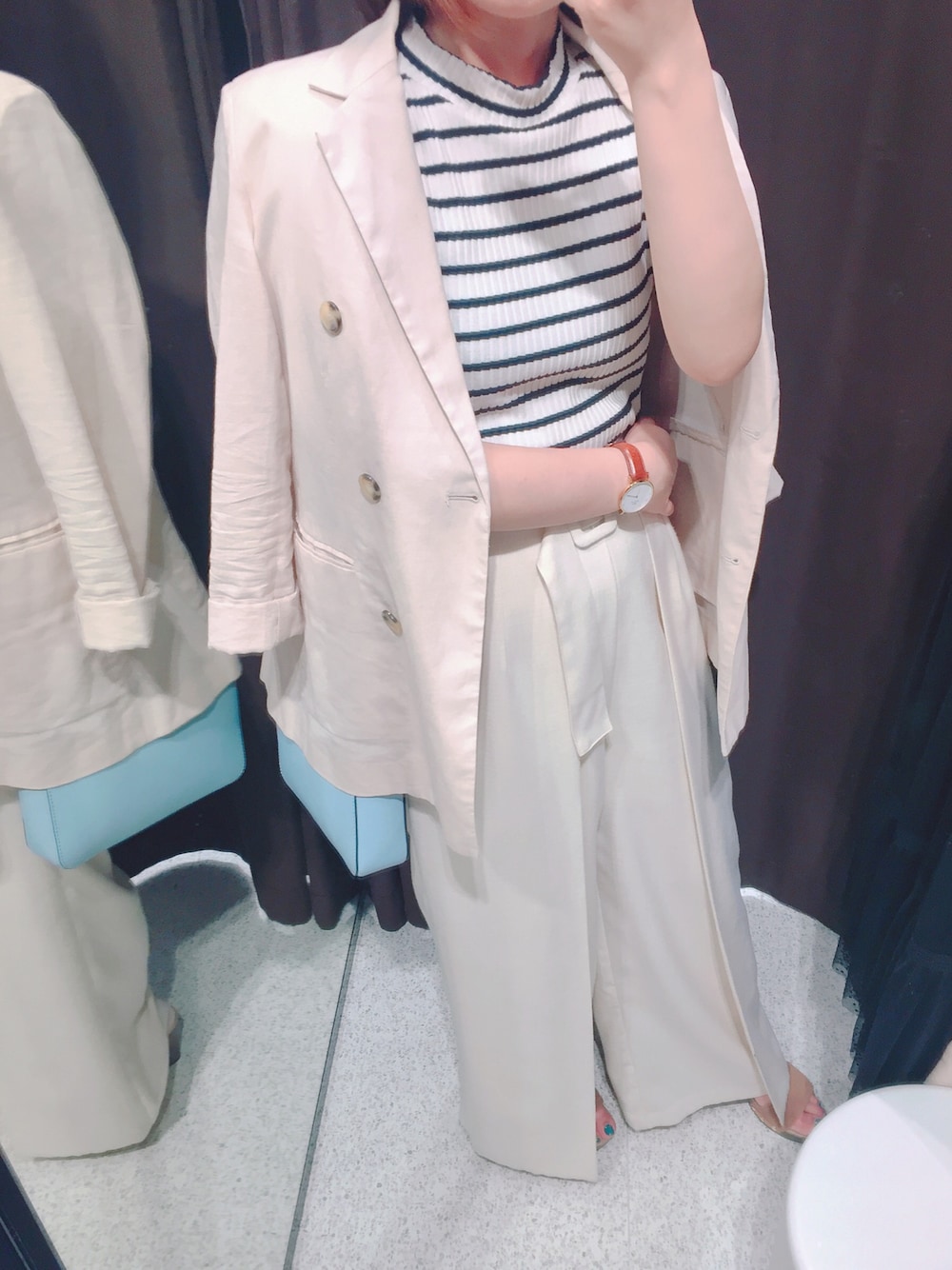 ゆうのテーラードジャケット「【洗える】【mina5月号掲載】【steady.5月号掲載】ダブルボタンコットンリネンジャケット」を使ったコーディネート