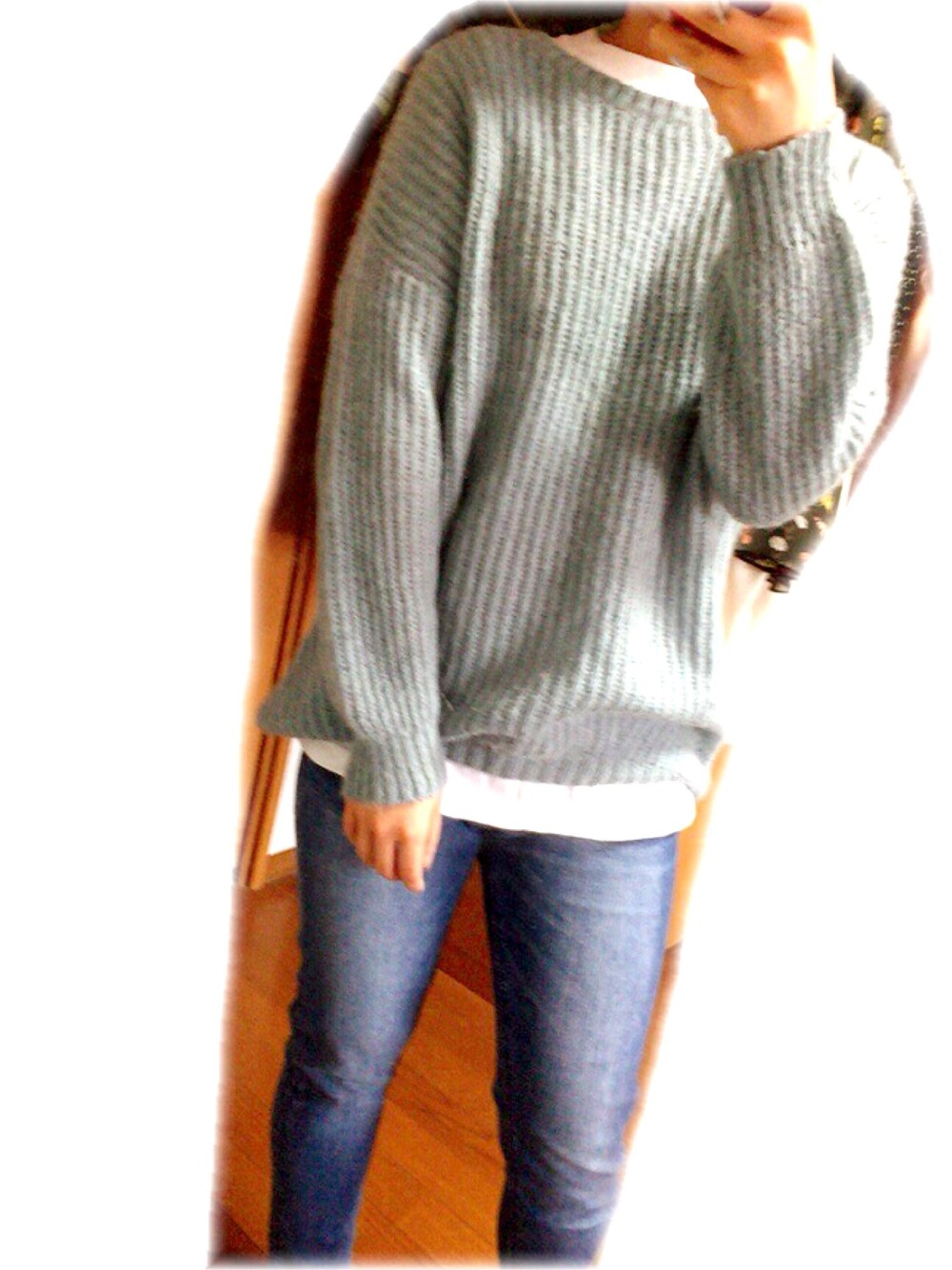 メンズライクに白Tを重ねて。 インナーの白TはAustin Mahone×Travis Japanのコラボグッズ ニットは写真よりもっと青っぽいくすみブルー