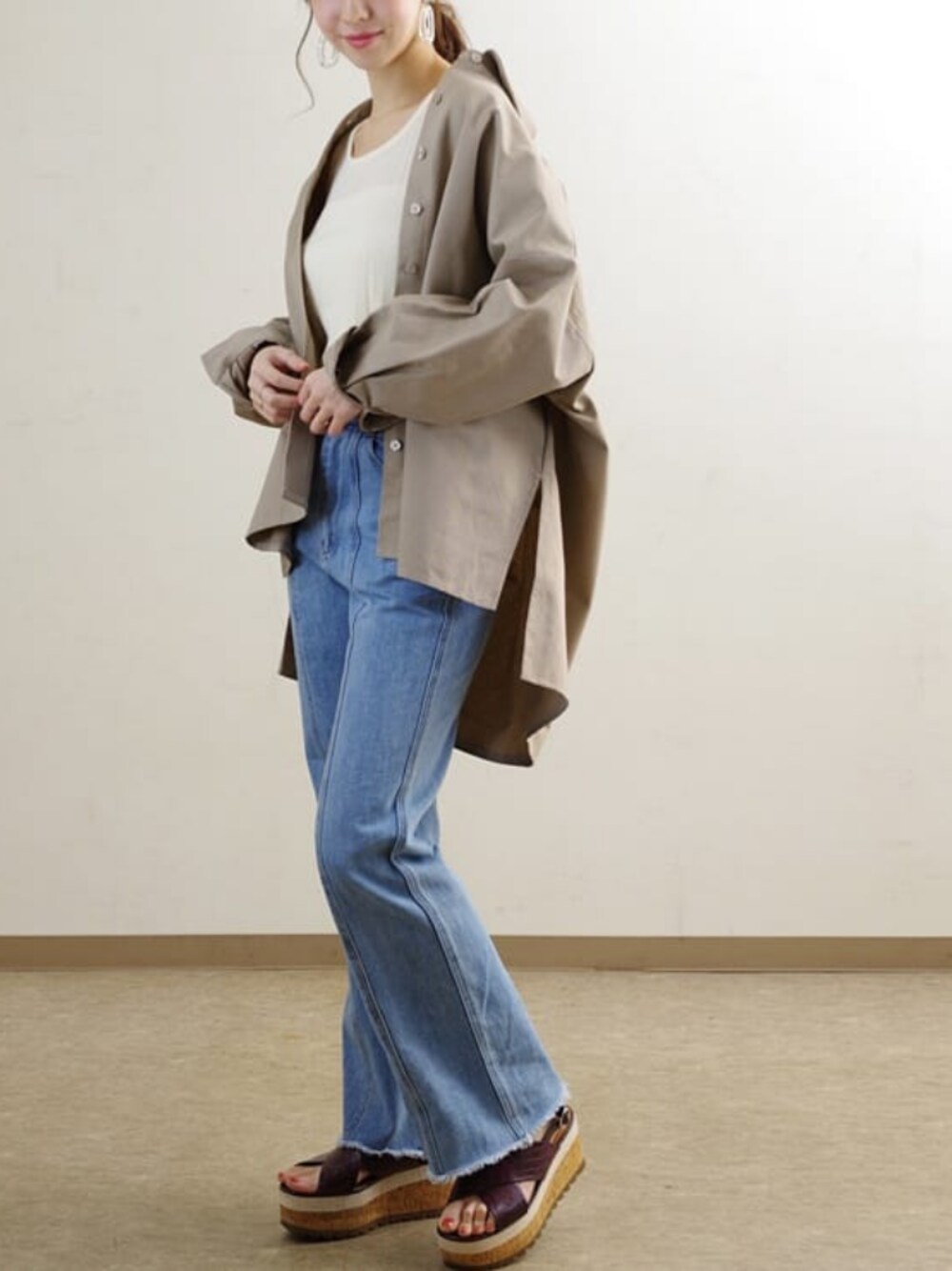 Fizzのシャツ/ブラウス「【Fizz/フィズ】 ボリューム袖 オーバーサイズツイルシャツ」を使ったコーディネート