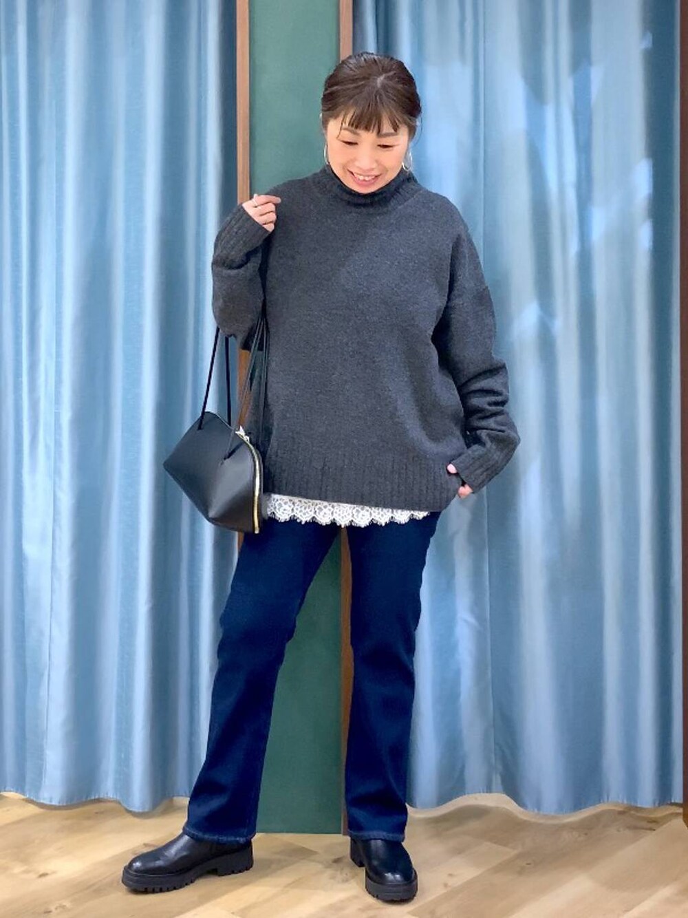 首がぎゅっとならない!カシミヤ混の上質ニット。 AQUAハイネックPO ⭐︎トップス 私も大好きなAQUA。何年か前のAQUAシリーズも未だに持ってます笑 毛95% カシミヤ5%のあったかニット。 冬に活躍間違いない!発色も綺麗です! 人気AQUAシリーズ。私はMサイズを着用してます! ⭐︎インナー レイヤードスタイルにオススメの裾フリルブラウス。 YouTubeでも使っていただいてるレイヤードアイテムです! お客様からも問い合わせがあるこのアイテムはニットのチクチクが苦手な方にもオススメ! ⭐︎パンツ 寒がりの方にオススメ!他スタイリングあり。 裏起毛デニム入荷しました! ストレッチも効いているあったかパンツ。パンストいらず! こちらはウエスト周りMで私はジャストです! ⭐︎ブーツ 他スタイリングあり このブーツ、足首細く見えます!! しかも足首のフィット感とダルダルなたまりがないのでスッキリ!スカート、パンツどちらでも合わせやすく、軽いです! 私は37サイズ! これからどんどん スタイリングupするのでフォローお願いします! Instagramもupしていきますので ぜひ↓のURLから @by_sayafujiを見ていただけたら嬉しいです!