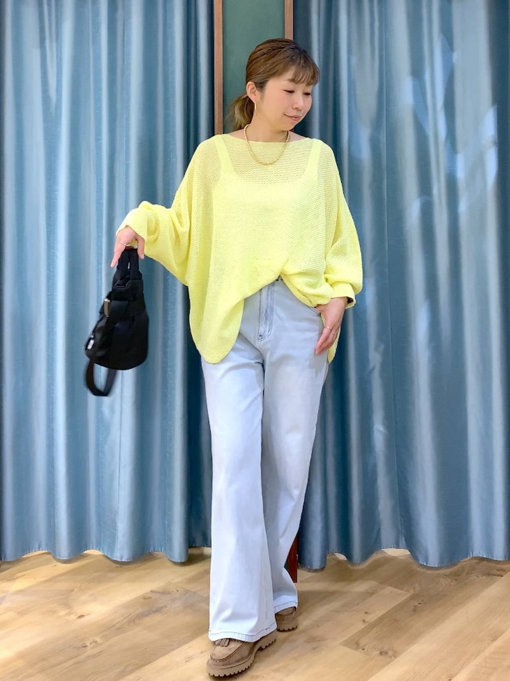 ⭐︎ニット この緩やかな動きのある落ち感が慣れた感じを演出してくれます!インナーによってシーズン長く使えるので便利。秋くらいまで使えそう!おでかけや旅行にもオススメです!お手入れ方法:ハンドウォッシャブル 和紙を極めて補足スリットさせて糸に撚り込んだ素材。 麻のようなタッチを再現し、清涼感に優れています。 ⭐︎パンツ 他着用スタイリングあり デニムと思いきやジャージー素材をインディゴ染めした お気に入りビックリアイテム! 私はゆる感を出したいのでMを買いました! ウエスト全ゴムかつ、20センチ以上もゆとりが出る! 旅行や、長時間の移動、普段の負担を減らしたい人必見! 私の身長で裾ひとおりすると小慣れだ感じで裾の心配も◎ これからどんどん スタイリングupするのでフォローお願いします! Instagramもupしていきますので ぜひ@by_sayafujiを見ていただけたら嬉しいです!
